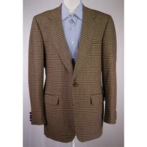 Lanvin Paris Vintage Brown Green Plaid Knit Wool 2-Btn Sportcoat Blazer 42L