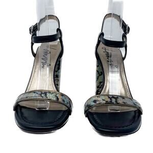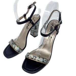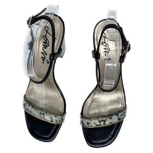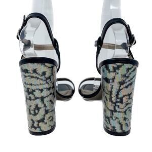 Lanvin Rainbow holographic block heel metallic ankle wrap sandals size 38.5