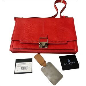 Lanvin Snakeskin Partition Shoulder Bag in Red