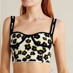 Lanvin's top was styled as part of a coordinating set at the Spring '22 runway, and we like it just as well paired with high-rise denim or neutral tailoring. It's made from tactile floral-jacquard in a fitted, corset-inspired silhouette defined by black trims.