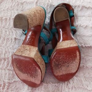 Lanvin Teal Platform Cork Sandals Heels Size 6