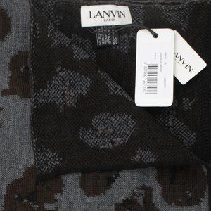 Lanvin Unisex Virgin Wool Scarf Charcoal Grey Brown Camouflage