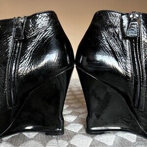 Lanvin Wedge Heeled Black Patent Leather Ankle Boots Side Zip Women EU 39 US 8