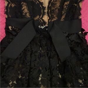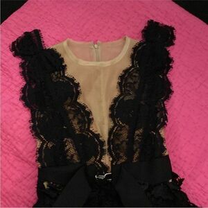 Lanvin Elegant Black Lace Dress with Nude Lining, US0