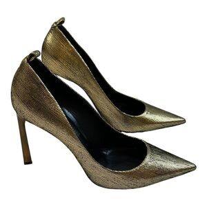 Lanvin Paris Womens Classic Gold Metallic Stiletto Crystal Studded Heels SZ 9.5.