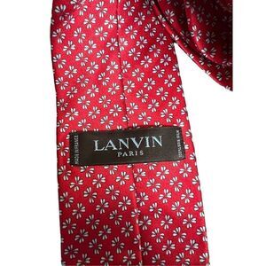 Gorgeous bold red silk tie with a silvery blue floral print. Just a stunning classic addition to your wardrobe.