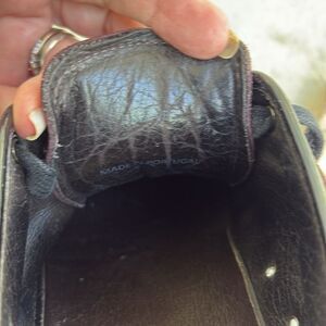 Black patent leather toe cap with a deep chocolate brown suede. Check out the pictures. They are in good condition but not perfect.