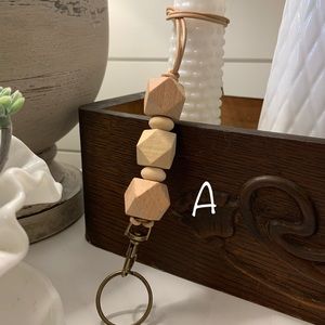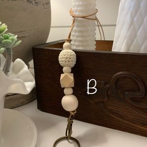Material: wood, leather, silicone, crochet (can add essential oils to the crochet bead) metal brushed brass,