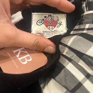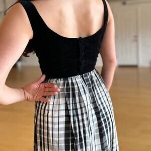 Lanz Oficial Women’s Small Gown Black White Gingham Velvet Lovely Long Maxi Dress Vintage, button up back closure