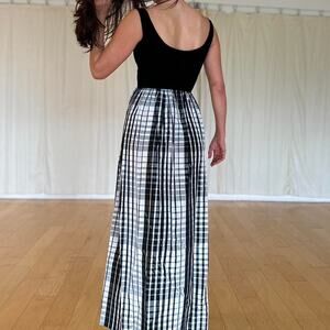 Lanz Oficial Women’s Small Gown Black White Gingham Velvet Maxi Vintage