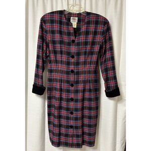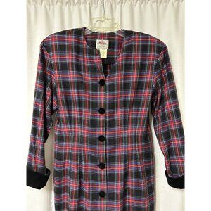 Lanz Original Vintage Dress Red Plaid Modest Womens Sz 12 Buttons
