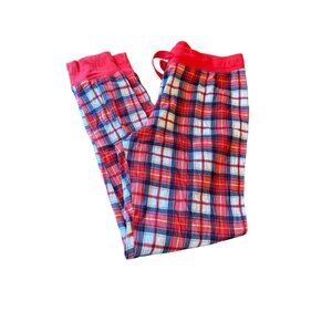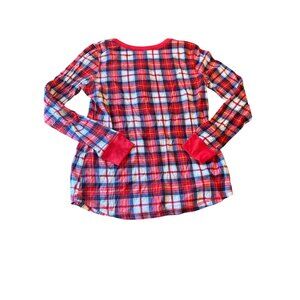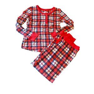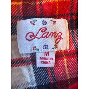 Lanz Womens Red/White/Blue Plaid Pajama Set M 100% Cotton Long Sleeve Top & Pant