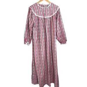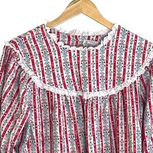 Lanz of Salzburg Classic Flannel Tyrolean Nightgown Womens Large Red White Long