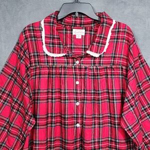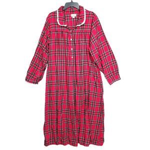Lanz of Salzburg Nightgown Red Tartan Peter Pan Flannel Gown Red Plaid Pajama XL