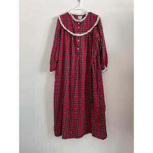 Lanz of Salzburg Plaid Flannel Nightgown Women M Red Tartan Cabincore Holiday