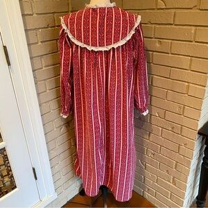 Lanz of Salzburg Red Floral Heart Print Flannel Nightgown Long Medium M Womens