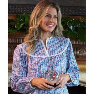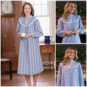 Lanz of Salzburg Sz S Nightgown Classic Blue Tyrolean Stripe Flannel NWOT