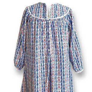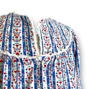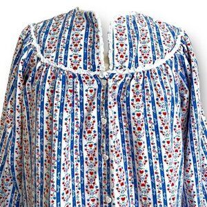 Lanz of Salzburg Womens Nightgown Sz S Tyrolean Heart Floral Stripe Flannel