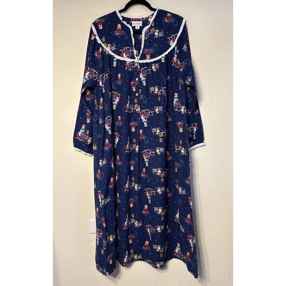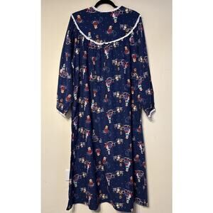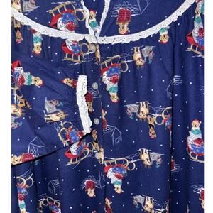 Lanz of Salzburg Women's XL Long Sleeve Sleigh Puppies Print 100% Cotton Flannel Nightgown Christmas Holiday GrannyCore