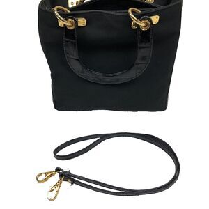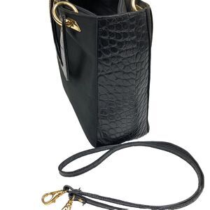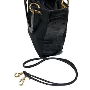 Lanzetti Leather Canvas Tote Handbag Black Small 2 Handle Croc embossed