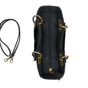 This Lanzetti tote handbag in black is a perfect accessory for any occasion. It features a square shape with croc-embossed canvas and leather exterior material, 2 double handles in black carbon fiber, and a gold hardware accent. The bag has a zip closure and a lined interior which makes it lightweight and easy to carry. The tote is small with dimensions of 9 x 8 x 5 inches, making it perfect for party/cocktail or casual wear. Its exterior color is black with an animal print pattern that adds a touch of art, rock, city, classic, gothic, and retro vibes to your style. The bag is made in Japan and is a vintage type.