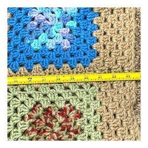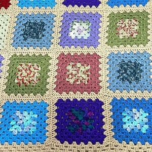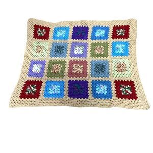 Add a pop of color to your living room with this handmade crotched sofa throw. The ivory base is adorned with a variety of multicolored granny squares, giving it a unique and colorful farmhouse style. Measuring 37" x 43", this non-standard sized throw is perfect for any room in your home.