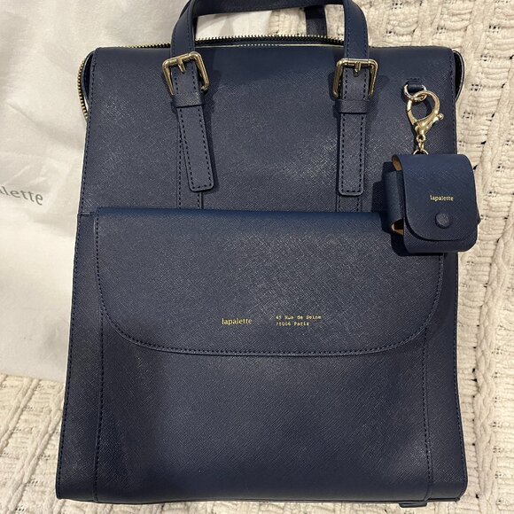 Lapalette Navy Picardie Backpack in great condition no stains, scratches, or scuffs. Used it for 9 months my last year of undergrad. Comes with duster bag and airpod case (has two button clasps to adjust for regular or pro sized airpods). Love the handles on top of the bag and the straps on the back.