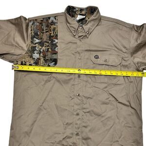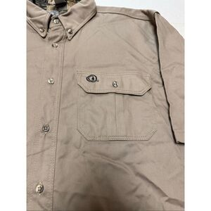 Lapco Shooting Oilfield Camo Shirt Men Size L Beige Button Short Sleeve Heavy