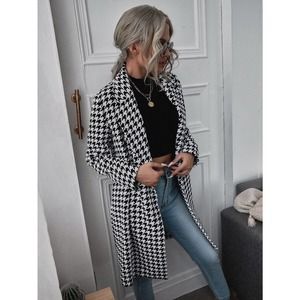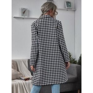 Lapel Collar Double Breasted Houndstooth plaid long pea Coat peacoat trench coat