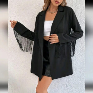 Lapel Neck Fringe Trim Longline Blazer