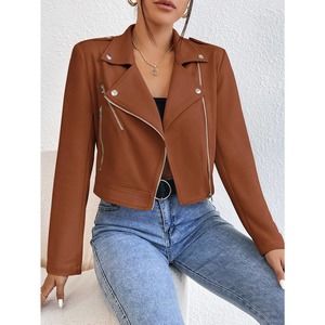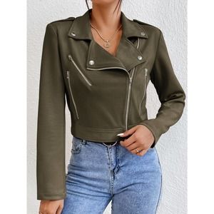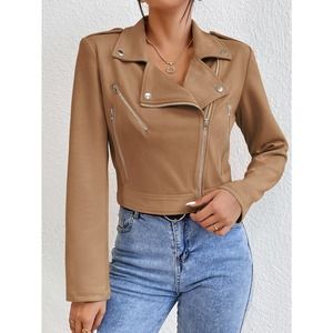Lapel collar Zip Up vegan Moto Jacket beige cream