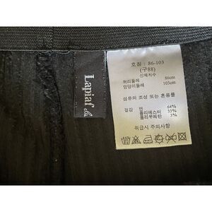 Classic blue wide leg corduroy pants by Lapfiaf with comfortable elastic waist and side pockets. Made of 64% cotton, 33% polyester, 3% spandex for a soft feel and slight stretch. Marked Korean size 88 (approx. US Medium/Large). Flat measurements: waist approx. 13.5”, rise approx. 12”, inseam approx. 30.5”, outseam approx. 39”. Gently pre-owned and in very good condition with no visible flaws. Versatile and timeless piece perfect for casual wear, work, or styling with boots and sweaters.
