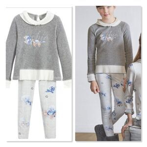 Lapin House Blue Rose Velvet Top & Leggings Set size 2.