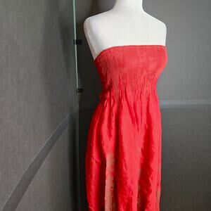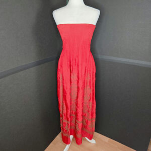 Lapis Anthropologie EUC Tube Dress Damask Pattern Maxi gown Strapless OS red