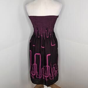 Lapis Anthropologie EUC Tube Dress Geometric Cityscape Strapless OS purple