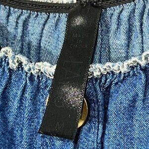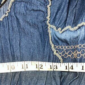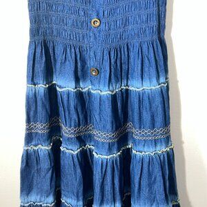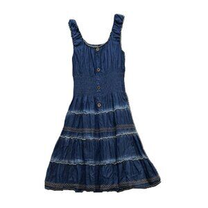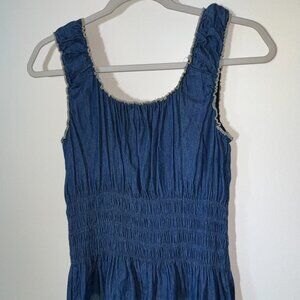 Lapis Anthropologie Tiered Smocked Denim Maxi Peasant Prairie Boho Dress Sz M