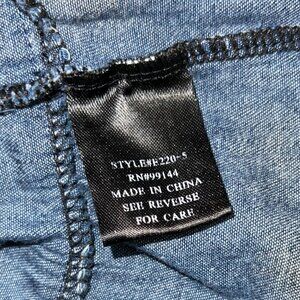 This beautiful Lapis dress, originally sold at Anthropologie, features a soft denim-look cotton fabric with a flattering smocked bodice and wooden button front.