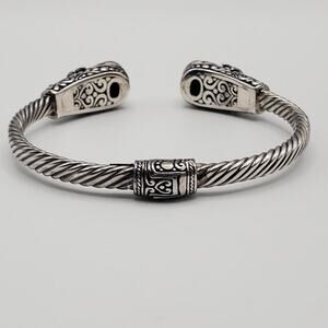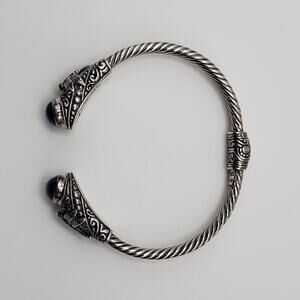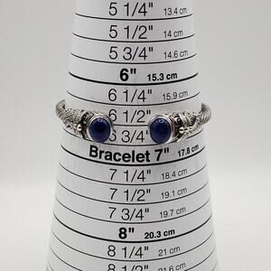 This Lapis Bali-Style Dragonfly Cuff Bracelet in Sterling Silver and 18kt Yellow Gold is a stunning piece of fine jewelry featuring an oval-shaped Lapis Lazuli stone as the main gemstone. The cuff style bracelet is signed by Ross-Simons and crafted with yellow gold and sterling silver, making it a versatile and elegant accessory for any occasion. With a beautiful blue color and a theme of beauty and animals & insects, this bracelet is a perfect statement piece to add to your collection of fine jewelry. Made in Indonesia, it showcases the intricate craftsmanship and attention to detail.