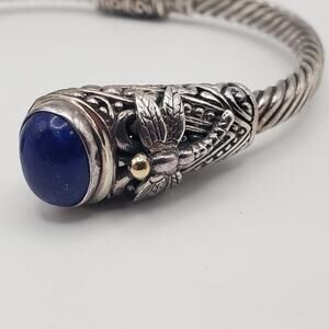 Lapis Bali-Style Dragonfly Cuff Bracelet in Sterling Silver and 18kt Yellow Gold