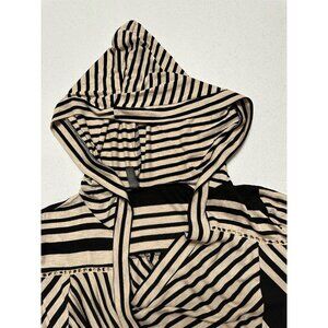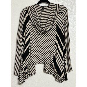 Lapis Black Tan Long Sleeve Striped Draped Front Open Cardigan Hoodie Stretch S