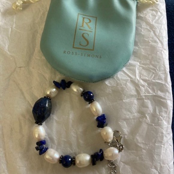 Ross-Simmons Lapis and cultured pearl & Silver bracelet with pouch
