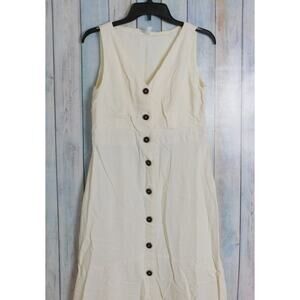 Lapis Dress Large Sleeveless Button Down Cream White Cotton Linen Blend