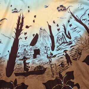 Lapis Full Circle Skirt Sequins Beautiful Asian Art Design Retro Inspo Sz Large