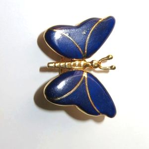 Gorgeous Lapis 18K Yellow Gold Butterfly Brooch/Pendant