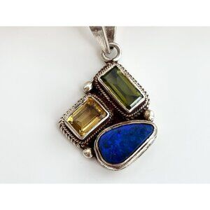 Lapis Lazuli, Citrine & Peridot Gemstone Sterling Silver 925 Vintage Pendant