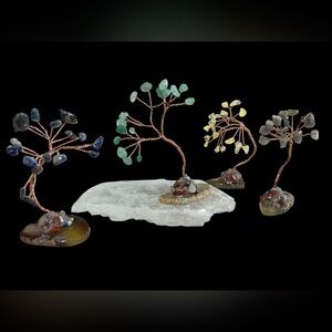 Lapis Lazuli Gemstone Bonsai Copper Wire Tree on Agate Slice 4in