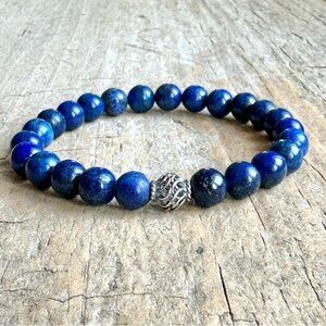 Lapis Lazuli Gemstone Bracelet Sterling Silver Accent Bead Unisex - 8mm Beads