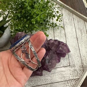 Lapis Lazuli Oval 925 sterling silver plated bracelet cuff filigree Dark Blue