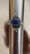 This blue lapis lazuli ring, marked "925" is a beautifully handcrafted piece featuring Southwest or vintage-inspired design elements. The deep, rich blue oval lapis lazuli gemstone, which has natural dark veining, is prominently set in a sterling silver bezel setting. The focal stone is further accentuated by an intricate twisted rope border and decorative silver beads (granulation) that define the top and bottom of the setting. The entire design, which has an oxidized finish in the recesses to highlight the details, rests on a polished sterling silver band. The "925" hallmark confirms the metal composition as high-quality sterling silver (92.5% pure silver). Weighing 2.7 grams, the ring is a size 5.5 and is a closed back design. The measurements are .66”L x .45”W x .28”D. The band measures 2.2mm.