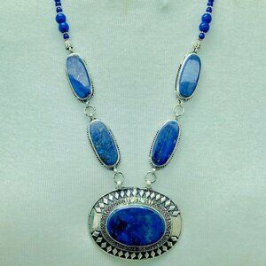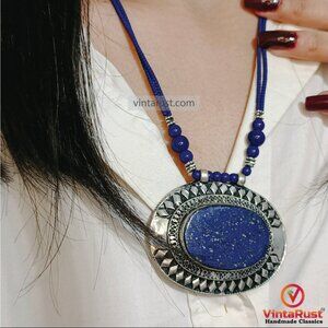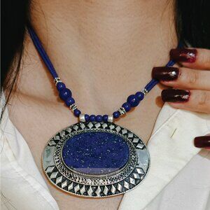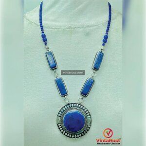 Lapis Lazuli Pendant Necklace: Handmade Ethnic Tribal Jewelry